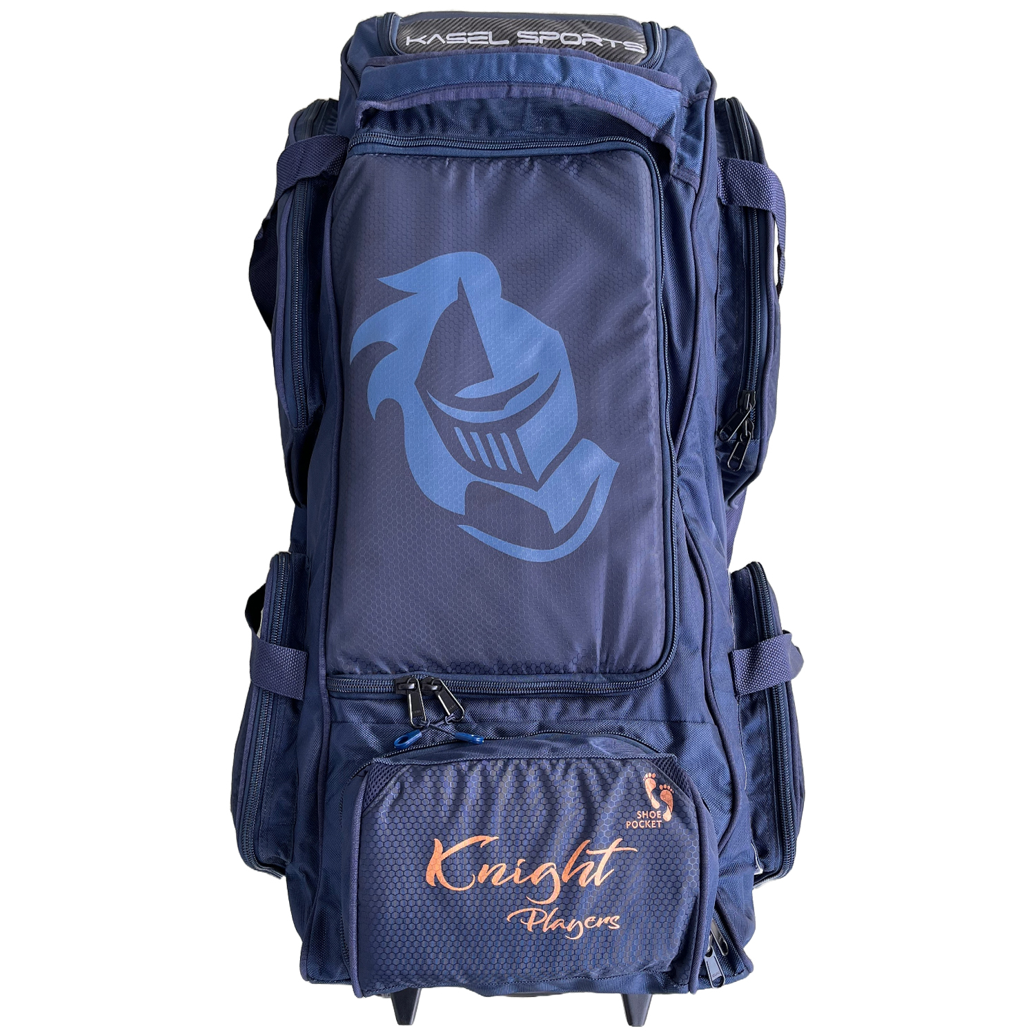 Premium multi-tier wheelie cricket bag for better kit organisation. A large D-shaped opening between tiers, allow for easy access to all kit. Three separate external bat caves provide easy access and secure storage. Additional external pocket for accessories.